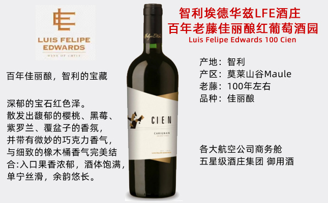 埃德華茲百年老藤佳麗釀紅葡萄酒 Luis Felipe Edwards 100 Cien 埃德華茲酒莊LFE酒位于智利中央谷地產(chǎn)區(qū) 埃德華茲酒園赤霞珠干紅葡萄酒 埃德華茲家族黑牌干紅葡萄酒
